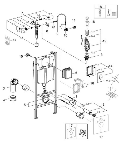 Инсталляция для унитаза Grohe Rapid SL 3 в 1 38719001 с кнопкой Skate Air, белый глянец. Все характеристики |