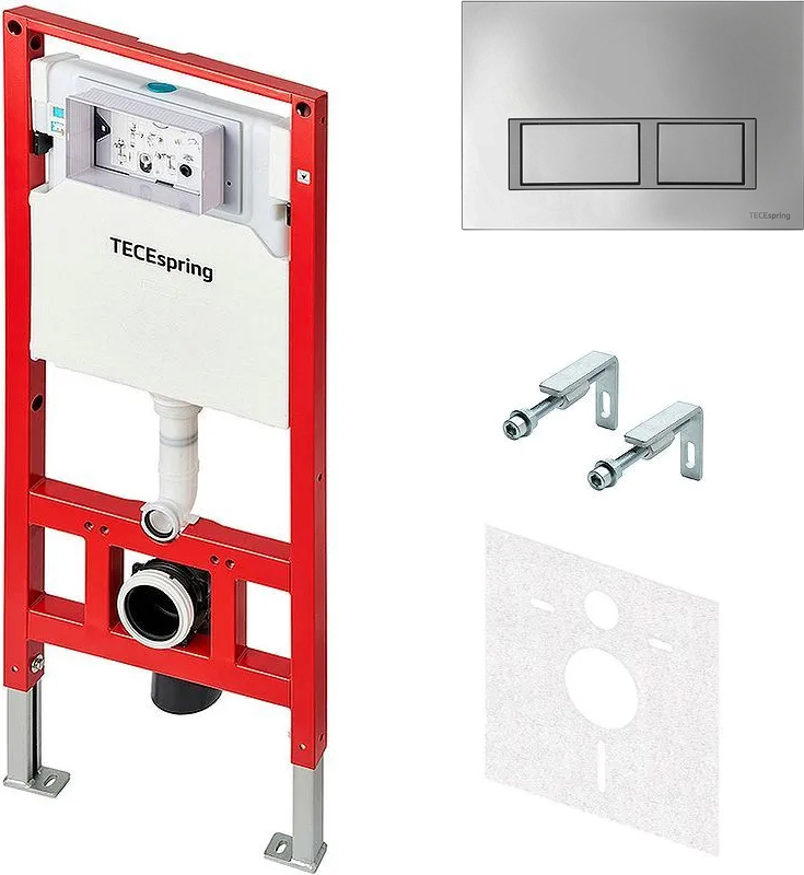 В комплекте: инсталляция Tecespring, кнопка Тecespring V хром глянцевый, шумоизоляция, крепежи. |