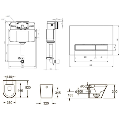 В комплекте: унитаз приставной Biore с крышкой 33040040, бачок скрытого монтажа Relfix 38020010, кнопка Relfix 3805001W.