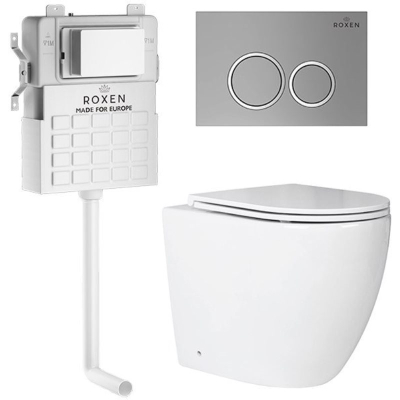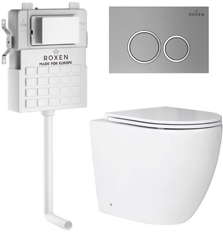 Унитаз с бачком Roxen Antares приставной с крышкой, с кнопкой кр., матов.хром. Все характеристики |