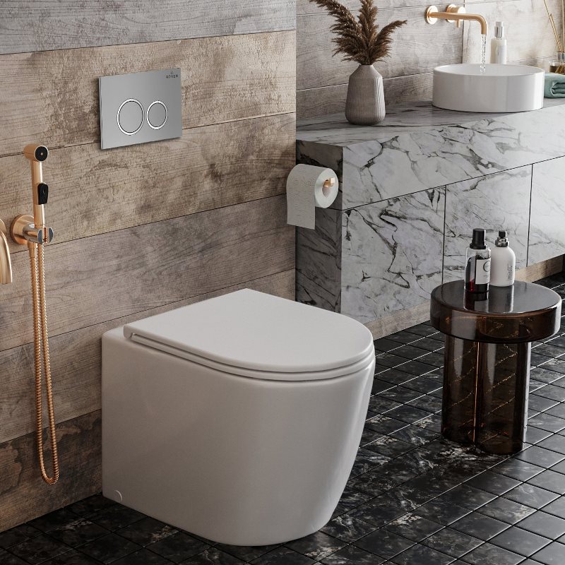 В комплекте: унитаз Antares 650185-01 приставной, бачок скрытого монтажа Attach 710215, тонкая крышка Duroplast с плавным опусканием, кнопка Santi 410260M пластик хром матовый, комплект креплений к стене. |