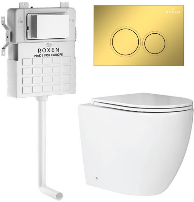 Унитаз с бачком Roxen Antares приставной с крышкой, с кнопкой кр., золото. Все характеристики |