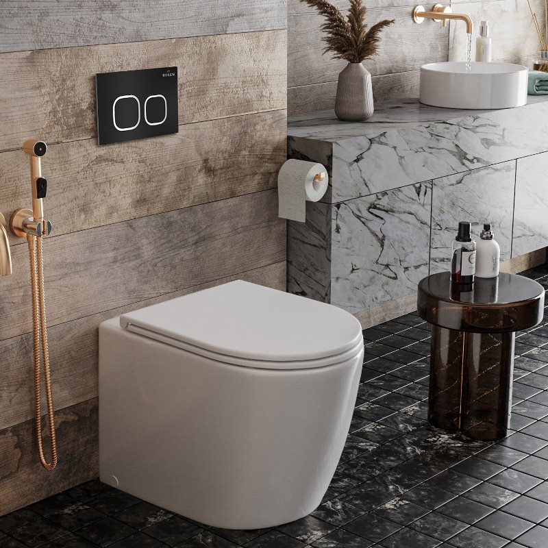 В комплекте: унитаз Antares 650185-01 приставной, бачок скрытого монтажа Attach 710215, тонкая крышка Duroplast с плавным опусканием, кнопка Santi 410280B пластик черный матовый, комплект креплений к стене. |