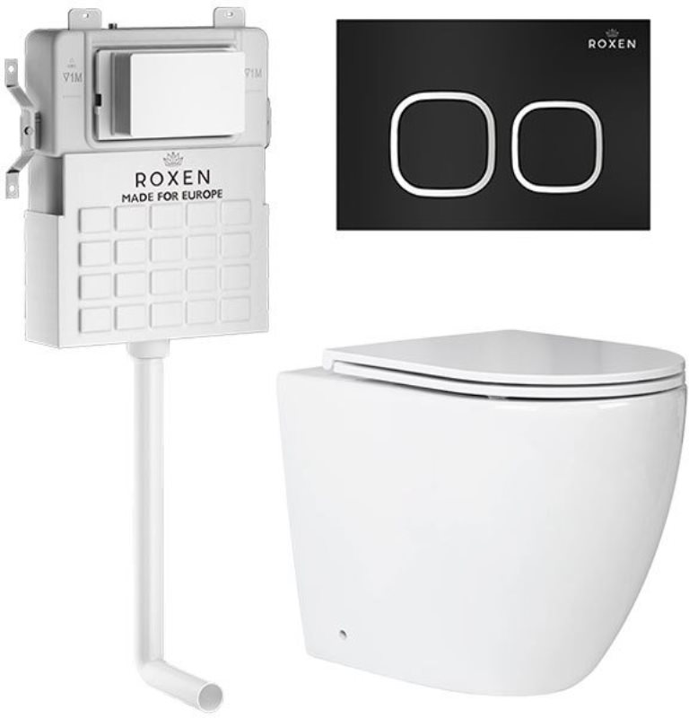 Комплект 5 в 1 Roxen Attach 966934 - готовое решение.Бачок. Ультратонкая модель. Оптимальная выверенная монтажная глубина 12 см. Цельнолитой бачок скрытого монтажа изготовлен из долговечного полимерного материала HDPE и защищен дополнительной шумоизоляционной пластиной S-Protect, которая предотвращает образование конденсата и плесени. Смыв предусматривает два режима 3/6 л. Доступ к коммуникациям осуществляется через увеличенное ревизионное отверстие кнопки инсталляции. Унитаз. Приставной унитаз Roxen Antares 650185-01 из санитарного фарфора PorCelain. Гладкая поверхность без пор препятствует перемещению бактерий. Антибактериальное покрытие Ultra Glide обеспечивает легкий уход, белизну и первоначальный внешний вид на долгие годы. Встроенный контейнер для гигиенических таблеток (аромадозатор). Чаша без внутреннего ободка Pro-Rimless c круговым смывом по всему периметру без разбрызгивания воды. Унитаз удаляет отходы с первого раза сильным каскадным потоком, при этом экономно расходует воду. Сиденье. Тонкое легкосъемное сиденье Quick Fix с крышкой Soft Close из жесткого материала Duroplast повышенной прочности. Плавное, медленное, мягкое опускание микролифт не позволит крышке ударяться о борт унитаза. Цвет крышки с сиденьем идеально подходит в тон унитаза, сохранит свой первоначальный блеск на долго. Хромированные металлические петли. Кнопка. Santi 410280B черного цвета из высококачественного ABS пластика марки HDPE с антибактериальным покрытием Purity. Легкоочищаемая устойчивая к истиранию поверхность. Установка без использования инструментов. Бесшумная двухрежимная система смыва LightTouch. Быстросъемная система Easy Fix для быстрого доступа к коммуникациям. Производство. Компания Roxen основана в Финляндии. Благодаря современному оборудованию, инновационным технологиям и строгому скандинавскому подходу ее продукция заслуженно держится в топе продаж. Качество. Сантехника Roxen изготовлена только из проверенных, безопасных материалов. Каждое изделие проходит обязательную проверку на соответствие международным стандартам. Высокая надежность, безупречные линии и доступность делают изделия Роксен привлекательным выбором на любой вкус. Гарантия. Длительная гарантия на фаянс - 25 лет. Изображение на мониторе может отличаться от оригинала. Комплектность: