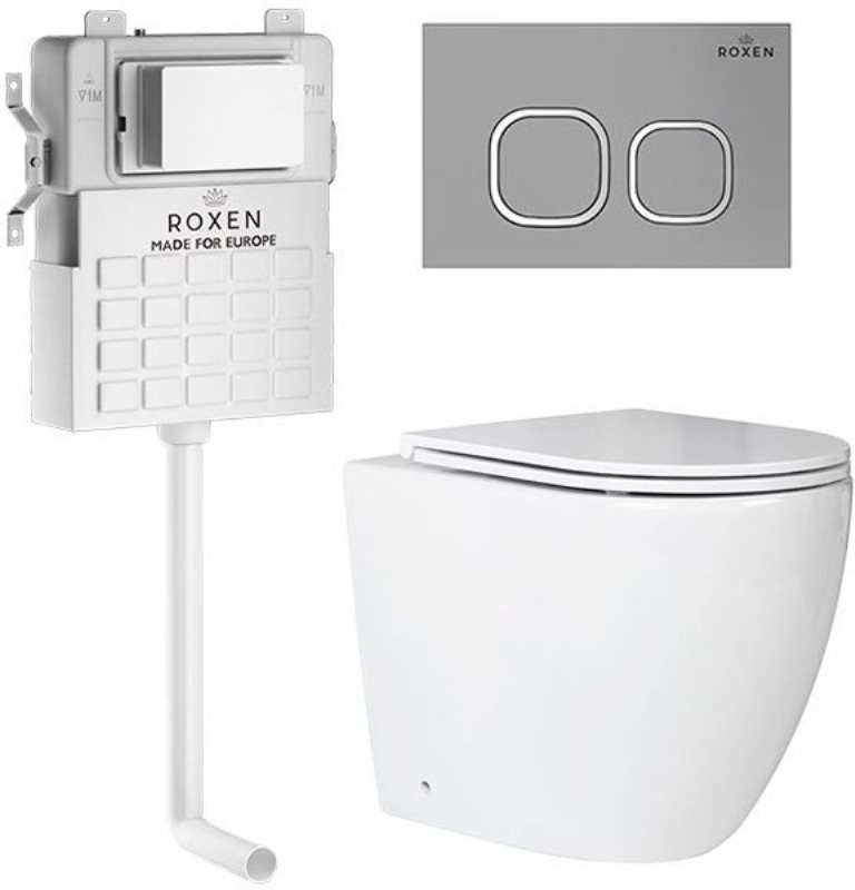 Унитаз с бачком Roxen Antares приставной с крышкой, с кнопкой кв., матов.хром. Все характеристики |
