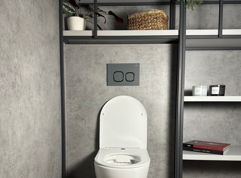 В комплекте: унитаз Antares 650185-01 приставной, бачок скрытого монтажа Attach 710215, тонкая крышка Duroplast с плавным опусканием, кнопка Santi 410280DG пластик серый бетон матовый, комплект креплений к стене. |