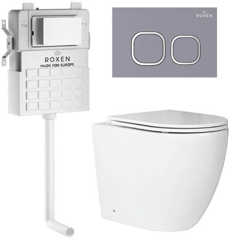 Комплект 5 в 1 Roxen Attach 966977 - готовое решение.Бачок. Ультратонкая модель. Оптимальная выверенная монтажная глубина 12 см. Цельнолитой бачок скрытого монтажа изготовлен из долговечного полимерного материала HDPE и защищен дополнительной шумоизоляционной пластиной S-Protect, которая предотвращает образование конденсата и плесени. Смыв предусматривает два режима 3/6 л. Доступ к коммуникациям осуществляется через увеличенное ревизионное отверстие кнопки инсталляции. Унитаз. Приставной унитаз Roxen Antares 650185-01 из санитарного фарфора PorCelain. Гладкая поверхность без пор препятствует перемещению бактерий. Антибактериальное покрытие Ultra Glide обеспечивает легкий уход, белизну и первоначальный внешний вид на долгие годы. Встроенный контейнер для гигиенических таблеток (аромадозатор). Чаша без внутреннего ободка Pro-Rimless c круговым смывом по всему периметру без разбрызгивания воды. Унитаз удаляет отходы с первого раза сильным каскадным потоком, при этом экономно расходует воду. Сиденье. Тонкое легкосъемное сиденье Quick Fix с крышкой Soft Close из жесткого материала Duroplast повышенной прочности. Плавное, медленное, мягкое опускание микролифт не позволит крышке ударяться о борт унитаза. Цвет крышки с сиденьем идеально подходит в тон унитаза, сохранит свой первоначальный блеск на долго. Хромированные металлические петли. Кнопка. Santi 410280DG цвета серый бетон из высококачественного ABS пластика марки HDPE с антибактериальным покрытием Purity. Легкоочищаемая устойчивая к истиранию поверхность. Установка без использования инструментов. Бесшумная двухрежимная система смыва LightTouch. Быстросъемная система Easy Fix для быстрого доступа к коммуникациям. Производство. Компания Roxen основана в Финляндии. Благодаря современному оборудованию, инновационным технологиям и строгому скандинавскому подходу ее продукция заслуженно держится в топе продаж. Качество. Сантехника Roxen изготовлена только из проверенных, безопасных материалов. Каждое изделие проходит обязательную проверку на соответствие международным стандартам. Высокая надежность, безупречные линии и доступность делают изделия Роксен привлекательным выбором на любой вкус. Гарантия. Длительная гарантия на фаянс - 25 лет. Изображение на мониторе может отличаться от оригинала. Комплектность: