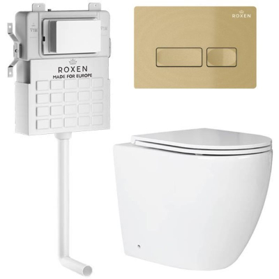 Унитаз с бачком Roxen Antares приставной с крышкой, с кнопкой пр., брашированное золото. Все характеристики |