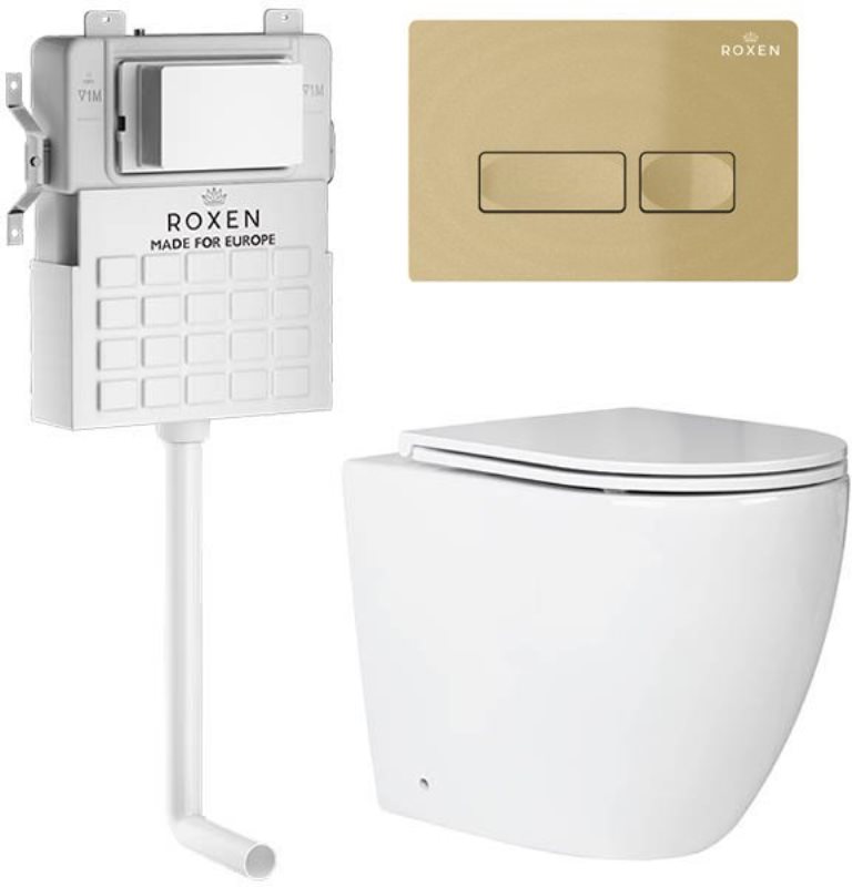 Комплект 5 в 1 Roxen Attach 967102 - готовое решение.Бачок. Ультратонкая модель. Оптимальная выверенная монтажная глубина 12 см. Цельнолитой бачок скрытого монтажа изготовлен из долговечного полимерного материала HDPE и защищен дополнительной шумоизоляционной пластиной S-Protect, которая предотвращает образование конденсата и плесени. Смыв предусматривает два режима 3/6 л. Доступ к коммуникациям осуществляется через увеличенное ревизионное отверстие кнопки инсталляции. Унитаз. Приставной унитаз Roxen Antares 650185-01 из санитарного фарфора PorCelain. Гладкая поверхность без пор препятствует перемещению бактерий. Антибактериальное покрытие Ultra Glide обеспечивает легкий уход, белизну и первоначальный внешний вид на долгие годы. Встроенный контейнер для гигиенических таблеток (аромадозатор). Чаша без внутреннего ободка Pro-Rimless c круговым смывом по всему периметру без разбрызгивания воды. Унитаз удаляет отходы с первого раза сильным каскадным потоком, при этом экономно расходует воду. Сиденье. Тонкое легкосъемное сиденье Quick Fix с крышкой Soft Close из жесткого материала Duroplast повышенной прочности. Плавное, медленное, мягкое опускание микролифт не позволит крышке ударяться о борт унитаза. Цвет крышки с сиденьем идеально подходит в тон унитаза, сохранит свой первоначальный блеск на долго. Хромированные металлические петли. Кнопка. Caspia 410280GB цвета брашированное золото из высококачественного ABS пластика марки HDPE с антибактериальным покрытием Purity. Легкоочищаемая устойчивая к истиранию поверхность. Установка без использования инструментов. Бесшумная двухрежимная система смыва LightTouch. Быстросъемная система Easy Fix для быстрого доступа к коммуникациям. Производство. Компания Roxen основана в Финляндии. Благодаря современному оборудованию, инновационным технологиям и строгому скандинавскому подходу ее продукция заслуженно держится в топе продаж. Качество. Сантехника Roxen изготовлена только из проверенных, безопасных материалов. Каждое изделие проходит обязательную проверку на соответствие международным стандартам. Высокая надежность, безупречные линии и доступность делают изделия Роксен привлекательным выбором на любой вкус. Гарантия. Длительная гарантия на фаянс - 25 лет. Изображение на мониторе может отличаться от оригинала. Комплектность: