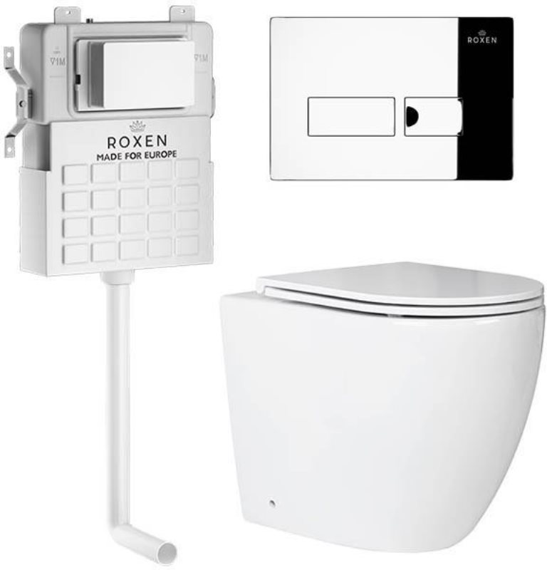 Комплект 5 в 1 Roxen Attach 967038 - готовое решение.Бачок. Ультратонкая модель. Оптимальная выверенная монтажная глубина 12 см. Цельнолитой бачок скрытого монтажа изготовлен из долговечного полимерного материала HDPE и защищен дополнительной шумоизоляционной пластиной S-Protect, которая предотвращает образование конденсата и плесени. Смыв предусматривает два режима 3/6 л. Доступ к коммуникациям осуществляется через увеличенное ревизионное отверстие кнопки инсталляции. Унитаз. Приставной унитаз Roxen Antares 650185-01 из санитарного фарфора PorCelain. Гладкая поверхность без пор препятствует перемещению бактерий. Антибактериальное покрытие Ultra Glide обеспечивает легкий уход, белизну и первоначальный внешний вид на долгие годы. Встроенный контейнер для гигиенических таблеток (аромадозатор). Чаша без внутреннего ободка Pro-Rimless c круговым смывом по всему периметру без разбрызгивания воды. Унитаз удаляет отходы с первого раза сильным каскадным потоком, при этом экономно расходует воду. Сиденье. Тонкое легкосъемное сиденье Quick Fix с крышкой Soft Close из жесткого материала Duroplast повышенной прочности. Плавное, медленное, мягкое опускание микролифт не позволит крышке ударяться о борт унитаза. Цвет крышки с сиденьем идеально подходит в тон унитаза, сохранит свой первоначальный блеск на долго. Хромированные металлические петли. Кнопка. Caspia 410280CH цвета хром из высококачественного ABS пластика марки HDPE с антибактериальным покрытием Purity. Легкоочищаемая устойчивая к истиранию поверхность. Установка без использования инструментов. Бесшумная двухрежимная система смыва LightTouch. Быстросъемная система Easy Fix для быстрого доступа к коммуникациям. Производство. Компания Roxen основана в Финляндии. Благодаря современному оборудованию, инновационным технологиям и строгому скандинавскому подходу ее продукция заслуженно держится в топе продаж. Качество. Сантехника Roxen изготовлена только из проверенных, безопасных материалов. Каждое изделие проходит обязательную проверку на соответствие международным стандартам. Высокая надежность, безупречные линии и доступность делают изделия Роксен привлекательным выбором на любой вкус. Гарантия. Длительная гарантия на фаянс - 25 лет. Изображение на мониторе может отличаться от оригинала. Комплектность: