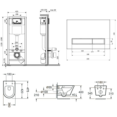 В комплекте: унитаз подвесной Biore Compacto Rimless 330402CR, инсталляция Relfix 38010010 с с бачком скрытого монтажа, звукоизоляцией и универсальным комплектом креплений; кнопка Relfix 3805001W.Дополнительно комплектуется: дозатор для дезинфицирующих средств. |