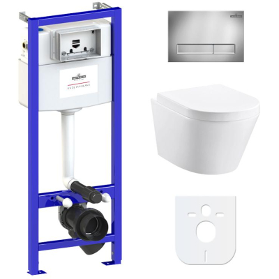 Унитаз с инсталляцией Lavinia Boho Biore Compacto Rimless Relfix 77040086, подвесной с крышкой, хром. Все характеристики |