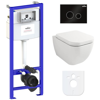 Унитаз с инсталляцией Lavinia Boho One Rimless Relfix 77040084, подвесной с крышкой, черный. Все характеристики |