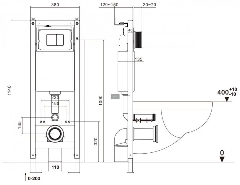 В комплекте: подвесной унитаз Roxen Antares 530185-01, инсталляция Zentralmodul AR0501, кнопка AR0601-CH, комплект креплений к стене, звукоизолирующая панель. |