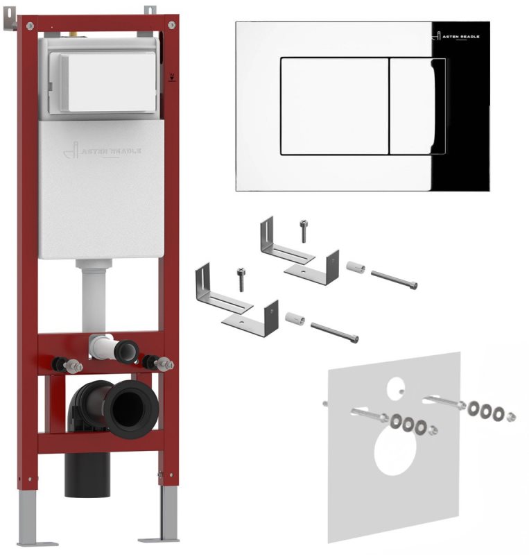 Комплект Asten Readle Zentralmodul AR0601-185CH - готовое решение.Унитаз. Подвесной унитаз Roxen Antares 530185-01 из санитарного фарфора. Гладкая поверхность без пор препятствует перемещению бактерий. Антибактериальное покрытие обеспечивает легкий уход, белизну и первоначальный внешний вид на долгие годы. Чаша без внутреннего ободка Rimless c круговым смывом по всему периметру без разбрызгивания воды. Унитаз удаляет отходы с первого раза сильным каскадным потоком, при этом экономно расходует воду. Сиденье. Тонкое легкосъемное сиденье с крышкой Soft Close из жесткого материала Duroplast повышенной прочности. Плавное, медленное, мягкое опускание микролифт не позволит крышке ударяться о борт унитаза. Хромированные металлические петли. Инсталляция. Усиленная монтажная рама Asten Readle Zentralmodul AR0501 выдерживает до 320 кг нагрузки. Оптимальная выверенная монтажная глубина 12-15 см. Глубина и высота инсталляции регулируются. Инсталляция монтируется на пол, на капитальную и на некапитальную стену. Специально разработанная система металлических креплений к стене дает возможность установки инсталляции в угол. Цельнолитой бачок скрытого монтажа изготовлен из долговечного полимерного материала HDPE и защищен шумоизоляционным пенополистиролом (EPS), который снижает уровень шума и предотвращает образование конденсата и плесени. Смыв настроен на использование инсталляции с подвесными унитазами и предусматривает два режима 3/6 л. Латунный запорный вентиль. Рама стальная с порошковым покрытием. Кнопка. Asten Readle AR0601-CH цвета хром с глянцевой поверхностью из ударопрочного, экологически чистого ABS пластика марки HDPE. Легкоочищаемая устойчивая к истиранию поверхность. Установка без использования инструментов. Бесшумная двухрежимная система смыва. Быстросъемная система Easy Fix для быстрого доступа к коммуникациям. Производство. Молодая компания Asten Readle основана в Германии. Благодаря высокому качеству, стильному дизайну и доступной стоимостью товаров, ее продукция завоевала доверие покупателей. Качество. Сантехника Asten Readle изготовлена из проверенных и экологичных материалов. Каждое изделие проходит обязательную проверку на соответствие международным стандартам. Функциональность, удобство в использовании, современный дизайн делают изделия Asten Readle привлекательным выбором на любой вкус. Гарантия. Длительная гарантия - 20 лет. Изображение на мониторе может отличаться от оригинала. Комплектность: