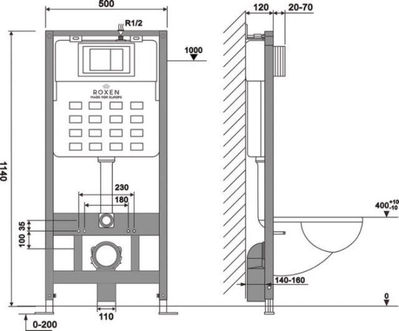Унитаз с инсталляцией Roxen Antares подвесной с крышкой, с кнопкой кр., черный. Все характеристики |