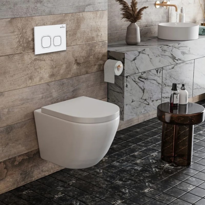 Унитаз с инсталляцией Roxen Antares подвесной с крышкой, с кв. кнопкой, белый. Все характеристики |