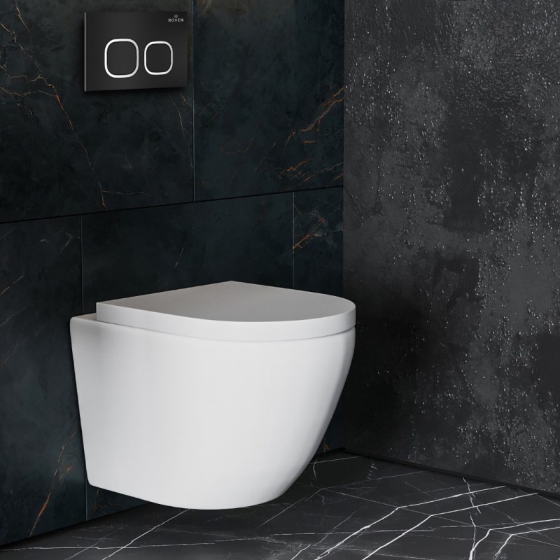 Унитаз с инсталляцией Roxen Antares подвесной с крышкой, с кв. кнопкой, черный. Все характеристики |