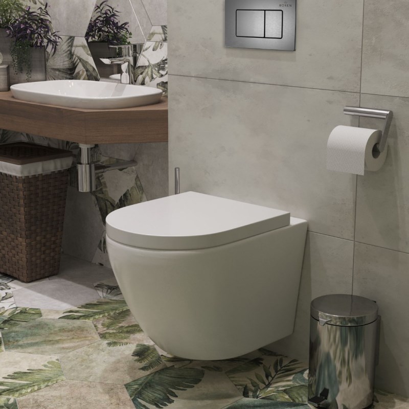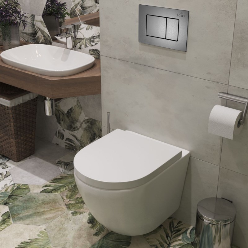Комплект 6 в 1 Roxen StounFix Dual Fresh 614314 - готовое решение.Свойства материала. Подвесной унитаз Roxen Antares 530185-02 из санитарного фарфора PorCelain. Гладкая поверхность без пор препятствует перемещению бактерий. Антибактериальное покрытие Ultra Glide обеспечивает легкий уход, белизну и первоначальный внешний вид на долгие годы. Встроенный контейнер для гигиенических таблеток (аромадозатор). Безободковый. Чаша без внутреннего ободка Pro-Rimless c круговым смывом по всему периметру без разбрызгивания воды. Унитаз удаляет отходы с первого раза сильным каскадным потоком, при этом экономно расходует воду. Сиденье. Легкосъемное сиденье Quick Fix с крышкой Soft Close из жесткого материала Duroplast повышенной прочности. Плавное, медленное, мягкое опускание микролифт не позволит крышке ударяться о борт унитаза. Цвет крышки с сиденьем идеально подходит в тон унитаза, сохранит свой первоначальный блеск на долго. Хромированные металлические петли. Производство. Компания Roxen основана в Финляндии. Благодаря современному оборудованию, инновационным технологиям и строгому скандинавскому подходу ее продукция заслуженно держится в топе продаж. Качество. Сантехника Roxen изготовлена только из проверенных, безопасных материалов. Каждое изделие проходит обязательную проверку на соответствие международным стандартам. Высокая надежность, безупречные линии и доступность делают изделия Роксен привлекательным выбором на любой вкус. Гарантия. Длительная гарантия на фаянс - 25 лет. Изображение на мониторе может отличаться от оригинала. Комплектность: