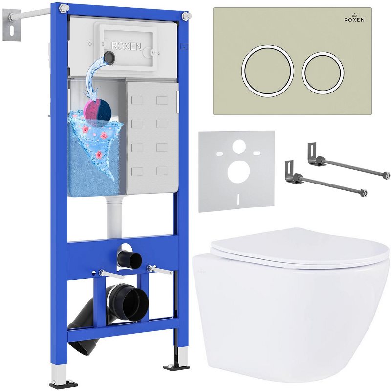 Унитаз с инсталляцией Roxen Antares Tornado подвесной с крышкой, с кнопкой кр., пастель бежевый. Все характеристики |