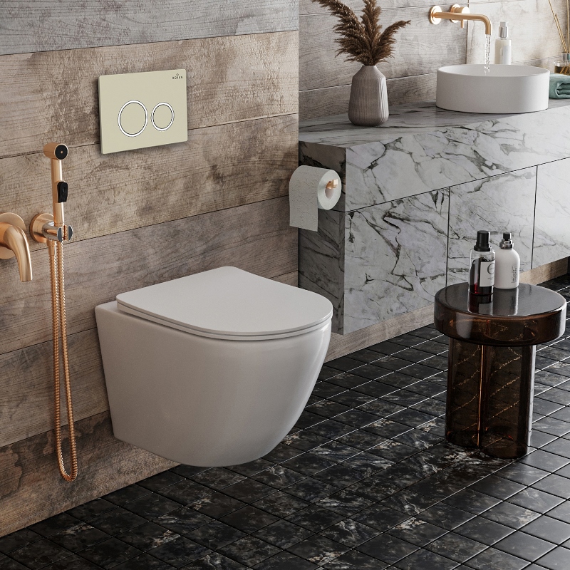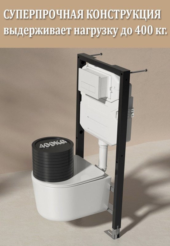 В комплекте: унитаз Antares Tornado 530205-01 подвесной, инсталляция StounFix Dual Fresh 710200 с бачком скрытого монтажа, тонкая крышка Duroplast с плавным опусканием,кнопка Santi 410260BG пластик пастель бежевый матовый, удлиненный комплект креплений к стене, звукоизоляция. |
