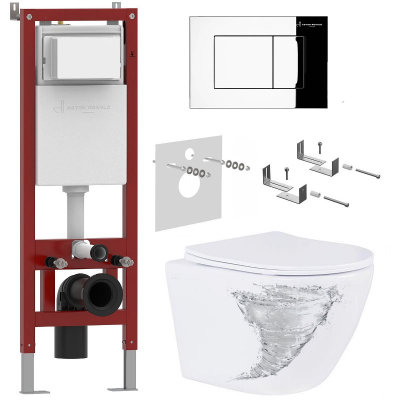 В комплекте: подвесной унитаз Roxen Antares Tornado 530205-01, инсталляция Zentralmodul AR0501, кнопка AR0601-CH, комплект креплений к стене, звукоизолирующая панель. |