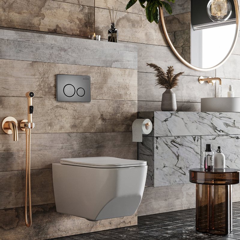Унитаз с инсталляцией Roxen Boro подвесной с крышкой, с кнопкой кр., оружейная сталь. Все характеристики |