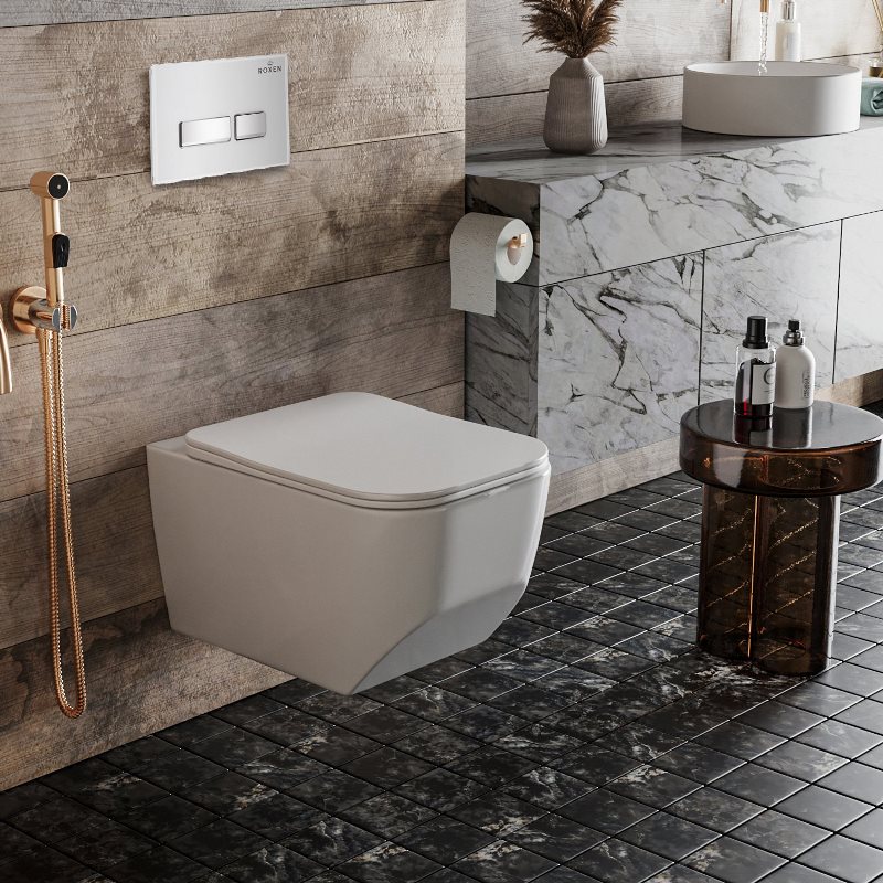 Комплект 6 в 1 Roxen StounFix Dual Fresh 639404 - готовое решение.Свойства материала. Подвесной унитаз Roxen Boro 530145-01 из санитарного фарфора PorCelain. Гладкая поверхность без пор препятствует перемещению бактерий. Антибактериальное покрытие Ultra Glide обеспечивает легкий уход, белизну и первоначальный внешний вид на долгие годы. Встроенный контейнер для гигиенических таблеток (аромадозатор). Безободковый. Чаша без внутреннего ободка Pro-Rimless c круговым смывом по всему периметру без разбрызгивания воды. Унитаз удаляет отходы с первого раза сильным каскадным потоком, при этом экономно расходует воду. Сиденье. Тонкое легкосъемное сиденье Quick Fix с крышкой Soft Close из жесткого материала Duroplast повышенной прочности. Плавное, медленное, мягкое опускание микролифт не позволит крышке ударяться о борт унитаза. Цвет крышки с сиденьем идеально подходит в тон унитаза, сохранит свой первоначальный блеск на долго. Хромированные металлические петли. Производство. Компания Roxen основана в Финляндии. Благодаря современному оборудованию, инновационным технологиям и строгому скандинавскому подходу ее продукция заслуженно держится в топе продаж. Качество. Сантехника Roxen изготовлена только из проверенных, безопасных материалов. Каждое изделие проходит обязательную проверку на соответствие международным стандартам. Высокая надежность, безупречные линии и доступность делают изделия Роксен привлекательным выбором на любой вкус. Гарантия. Длительная гарантия на фаянс - 25 лет. Изображение на мониторе может отличаться от оригинала. Комплектность: