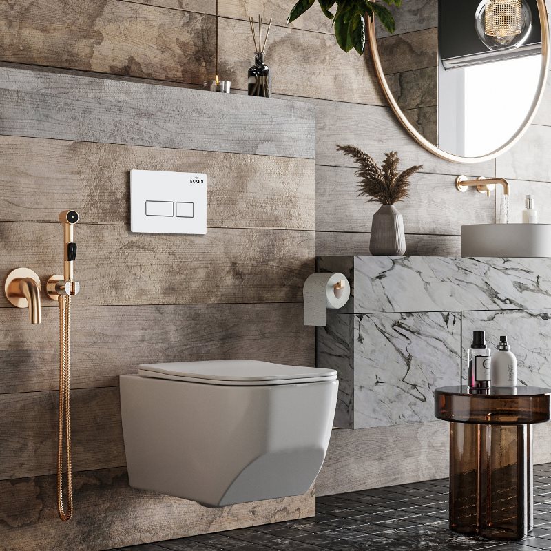 Комплект 6 в 1 Roxen StounFix Dual Fresh 577353 - готовое решение.Свойства материала. Подвесной унитаз Roxen Boro 530145-01 из санитарного фарфора PorCelain. Гладкая поверхность без пор препятствует перемещению бактерий. Антибактериальное покрытие Ultra Glide обеспечивает легкий уход, белизну и первоначальный внешний вид на долгие годы. Встроенный контейнер для гигиенических таблеток (аромадозатор). Безободковый. Чаша без внутреннего ободка Pro-Rimless c круговым смывом по всему периметру без разбрызгивания воды. Унитаз удаляет отходы с первого раза сильным каскадным потоком, при этом экономно расходует воду. Сиденье. Тонкое легкосъемное сиденье Quick Fix с крышкой Soft Close из жесткого материала Duroplast повышенной прочности. Плавное, медленное, мягкое опускание микролифт не позволит крышке ударяться о борт унитаза. Цвет крышки с сиденьем идеально подходит в тон унитаза, сохранит свой первоначальный блеск на долго. Хромированные металлические петли. Производство. Компания Roxen основана в Финляндии. Благодаря современному оборудованию, инновационным технологиям и строгому скандинавскому подходу ее продукция заслуженно держится в топе продаж. Качество. Сантехника Roxen изготовлена только из проверенных, безопасных материалов. Каждое изделие проходит обязательную проверку на соответствие международным стандартам. Высокая надежность, безупречные линии и доступность делают изделия Роксен привлекательным выбором на любой вкус. Гарантия. Длительная гарантия на фаянс - 25 лет. Изображение на мониторе может отличаться от оригинала. Комплектность:
