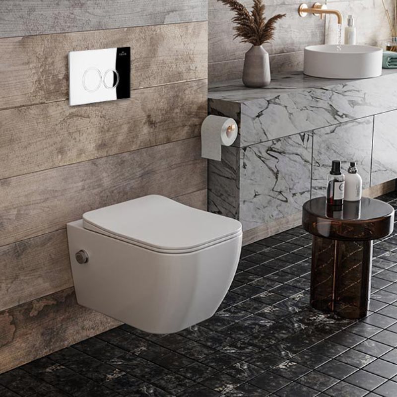 В комплекте: унитаз-биде Cube 530135-01X подвесной, инсталляция StounFix Dual Fresh 710200 с бачком скрытого монтажа, тонкая крышка Duroplast с плавным опусканием,кнопка Santi 410260CH пластик хром глянцевый, удлиненный комплект креплений к стене, звукоизоляция. |