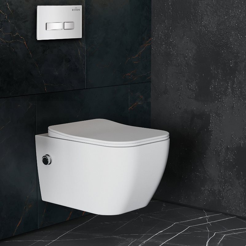 Унитаз с инсталляцией Roxen Cube Tornado подвесной с крышкой, с фальшбиде, с кнопкой пр., белый/хром. Все характеристики |