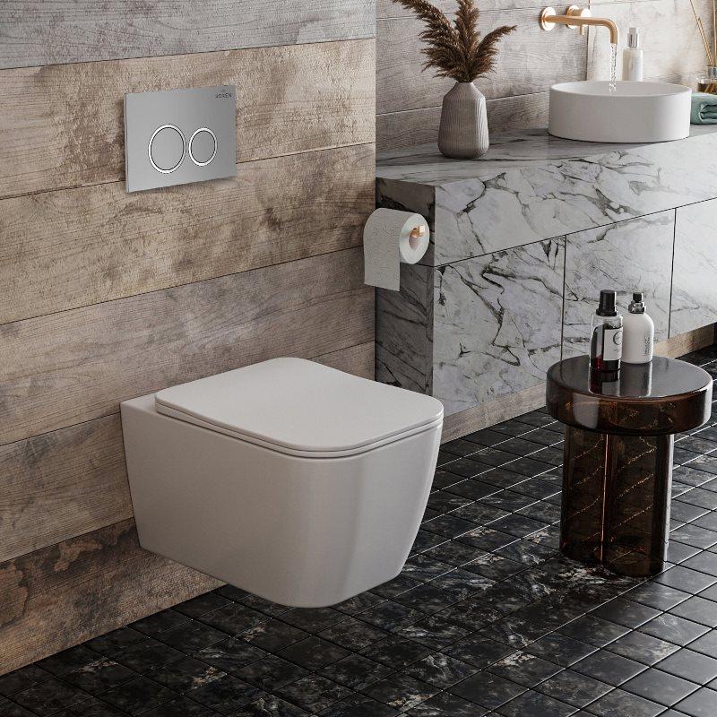 Унитаз с инсталляцией Roxen Cube Tornado подвесной с крышкой, с кнопкой кр., матов.хром. Все характеристики |