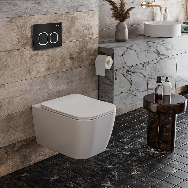 Унитаз с инсталляцией Roxen Cube Tornado подвесной с крышкой, с кнопкой кв., черный. Все характеристики |