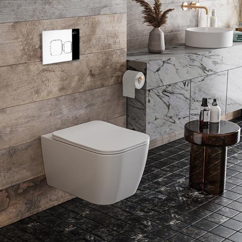 Унитаз с инсталляцией Roxen Cube Tornado подвесной с крышкой, с кнопкой кв., хром. Все характеристики |