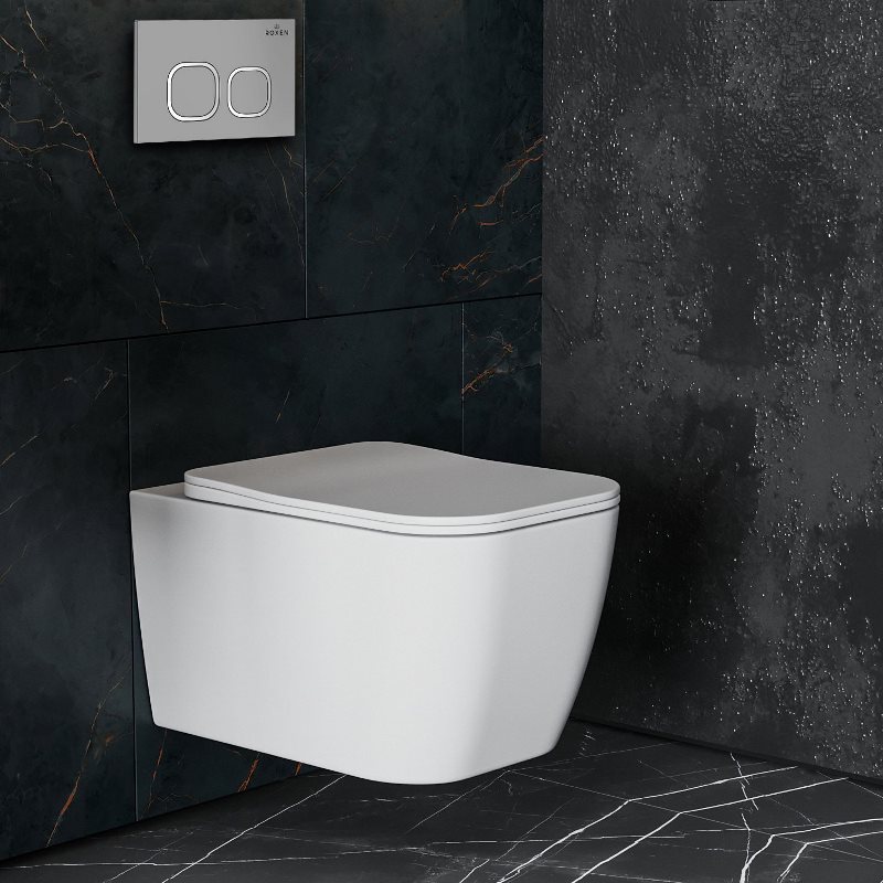 Унитаз с инсталляцией Roxen Cube Tornado подвесной с крышкой, с кнопкой кв., матов.хром. Все характеристики |