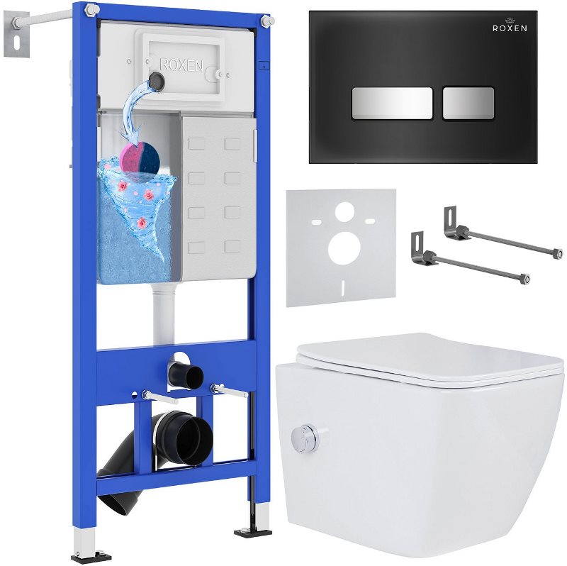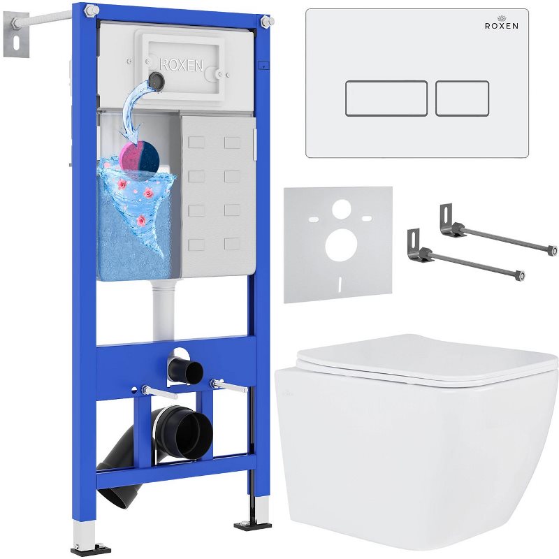 Унитаз с инсталляцией Roxen Cube Tornado подвесной с крышкой, с кнопкой пр., белый. Все характеристики |