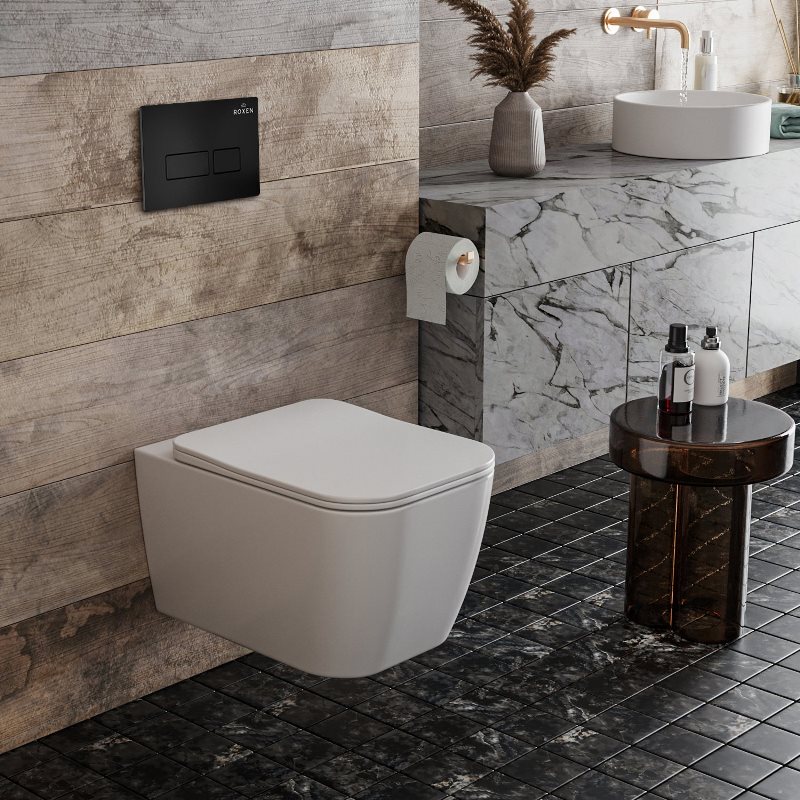 Унитаз с инсталляцией Roxen Cube Tornado подвесной с крышкой, с кнопкой пр., черный. Все характеристики |