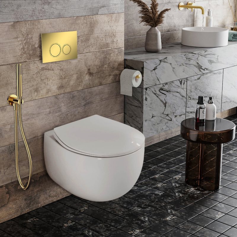 Унитаз с инсталляцией Roxen Egg подвесной с крышкой, с кнопкой кр., золото. Все характеристики |