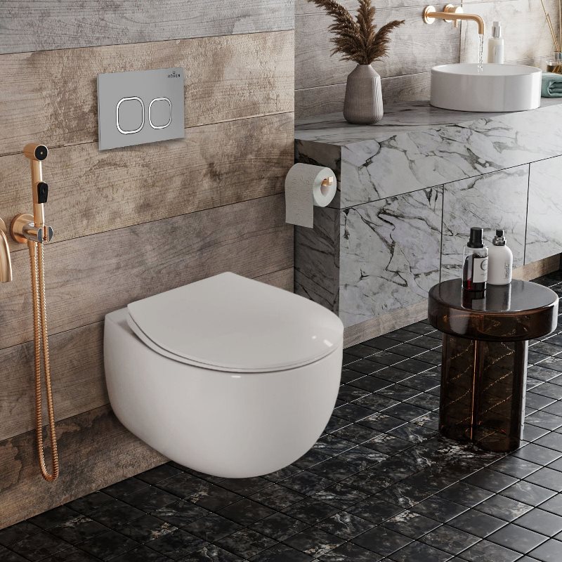 Унитаз с инсталляцией Roxen Egg подвесной с крышкой, с кнопкой кв., матов.хром. Все характеристики |