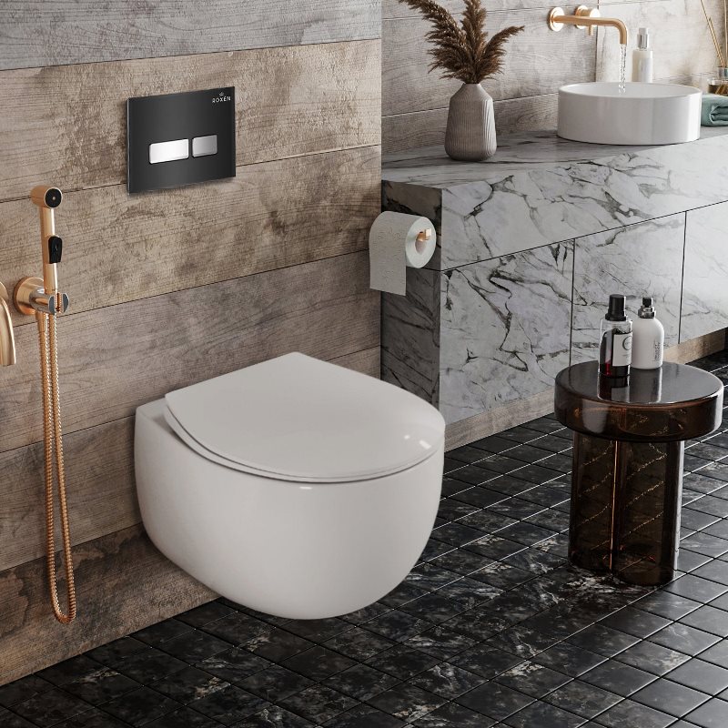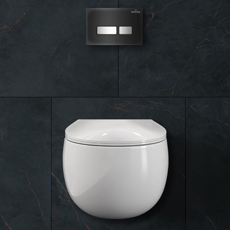 Унитаз с инсталляцией Roxen Egg подвесной с крышкой, с кнопкой пр., черный/хром. Все характеристики |