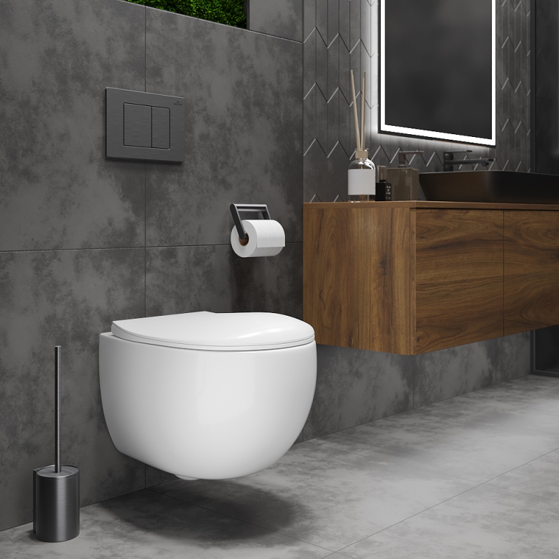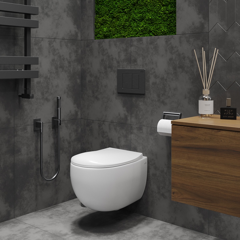 Унитаз с инсталляцией Roxen Egg подвесной с крышкой, с кнопкой пр.метал., черный. Все характеристики |