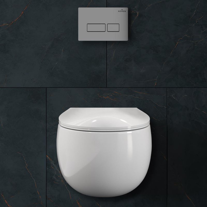 Унитаз с инсталляцией Roxen Egg подвесной с крышкой, с кнопкой пр., серый бетон. Все характеристики |