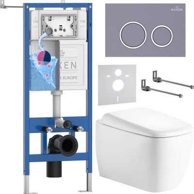 Унитаз с инсталляцией Roxen Martin подвесной с крышкой, с кнопкой кр., серый бетон. Все характеристики |
