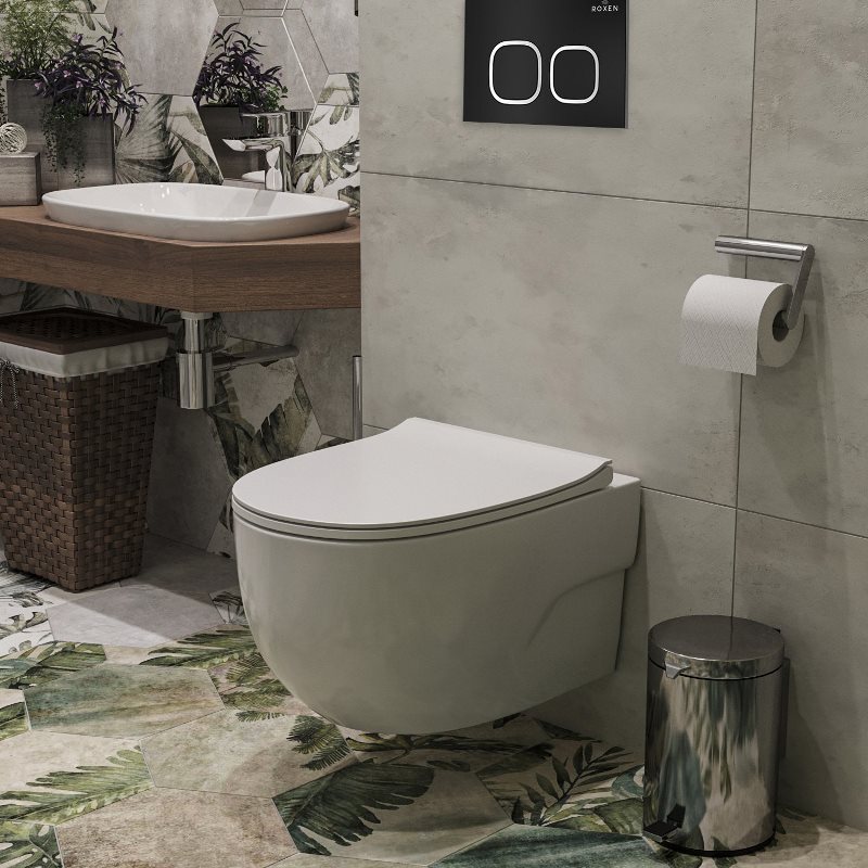 Комплект 6 в 1 Roxen StounFix Dual Fresh 545591 - готовое решение.Свойства материала. Подвесной унитаз Roxen Porto 530155-01 из санитарного фарфора PorCelain. Гладкая поверхность без пор препятствует перемещению бактерий. Антибактериальное покрытие Ultra Glide обеспечивает легкий уход, белизну и первоначальный внешний вид на долгие годы. Встроенный контейнер для гигиенических таблеток (аромадозатор). Безободковый. Чаша без внутреннего ободка Pro-Rimless c круговым смывом по всему периметру без разбрызгивания воды. Унитаз удаляет отходы с первого раза сильным каскадным потоком, при этом экономно расходует воду. Сиденье. Тонкое легкосъемное сиденье Quick Fix с крышкой Soft Close из жесткого материала Duroplast повышенной прочности. Плавное, медленное, мягкое опускание микролифт не позволит крышке ударяться о борт унитаза. Цвет крышки с сиденьем идеально подходит в тон унитаза, сохранит свой первоначальный блеск на долго. Хромированные металлические петли. Производство. Компания Roxen основана в Финляндии. Благодаря современному оборудованию, инновационным технологиям и строгому скандинавскому подходу ее продукция заслуженно держится в топе продаж. Качество. Сантехника Roxen изготовлена только из проверенных, безопасных материалов. Каждое изделие проходит обязательную проверку на соответствие международным стандартам. Высокая надежность, безупречные линии и доступность делают изделия Роксен привлекательным выбором на любой вкус. Гарантия. Длительная гарантия на фаянс - 25 лет. Изображение на мониторе может отличаться от оригинала. Комплектность: