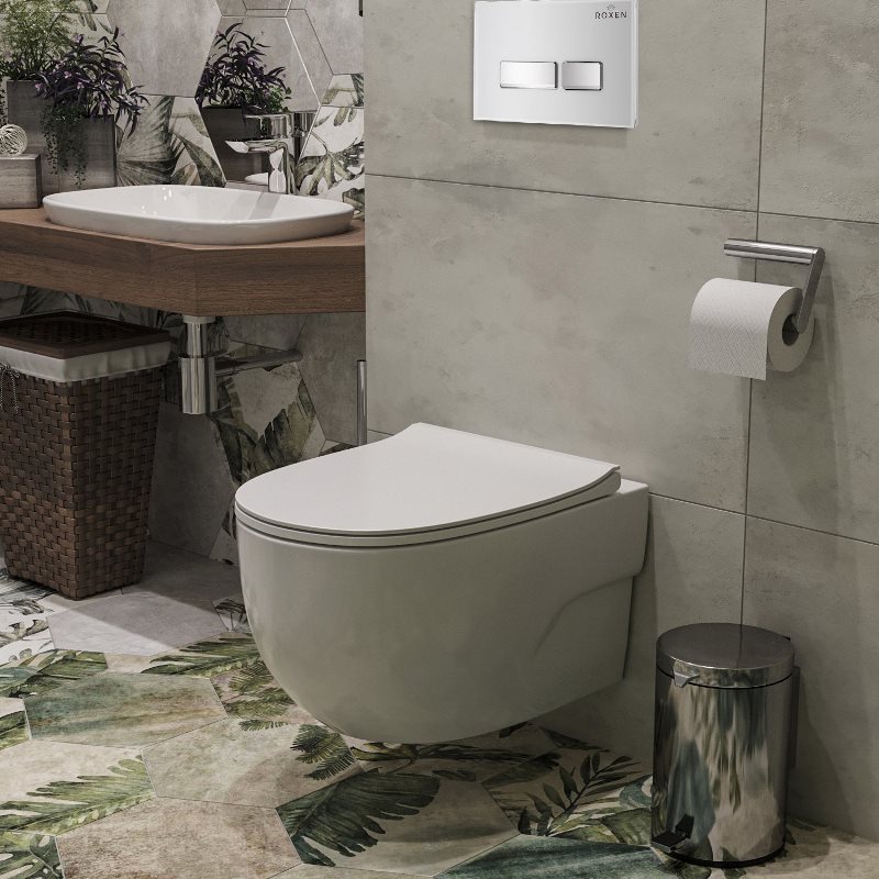 Комплект 6 в 1 Roxen StounFix Dual Fresh 636623 - готовое решение.Свойства материала. Подвесной унитаз Roxen Porto 530155-01 из санитарного фарфора PorCelain. Гладкая поверхность без пор препятствует перемещению бактерий. Антибактериальное покрытие Ultra Glide обеспечивает легкий уход, белизну и первоначальный внешний вид на долгие годы. Встроенный контейнер для гигиенических таблеток (аромадозатор). Безободковый. Чаша без внутреннего ободка Pro-Rimless c круговым смывом по всему периметру без разбрызгивания воды. Унитаз удаляет отходы с первого раза сильным каскадным потоком, при этом экономно расходует воду. Сиденье. Тонкое легкосъемное сиденье Quick Fix с крышкой Soft Close из жесткого материала Duroplast повышенной прочности. Плавное, медленное, мягкое опускание микролифт не позволит крышке ударяться о борт унитаза. Цвет крышки с сиденьем идеально подходит в тон унитаза, сохранит свой первоначальный блеск на долго. Хромированные металлические петли. Производство. Компания Roxen основана в Финляндии. Благодаря современному оборудованию, инновационным технологиям и строгому скандинавскому подходу ее продукция заслуженно держится в топе продаж. Качество. Сантехника Roxen изготовлена только из проверенных, безопасных материалов. Каждое изделие проходит обязательную проверку на соответствие международным стандартам. Высокая надежность, безупречные линии и доступность делают изделия Роксен привлекательным выбором на любой вкус. Гарантия. Длительная гарантия на фаянс - 25 лет. Изображение на мониторе может отличаться от оригинала. Комплектность: