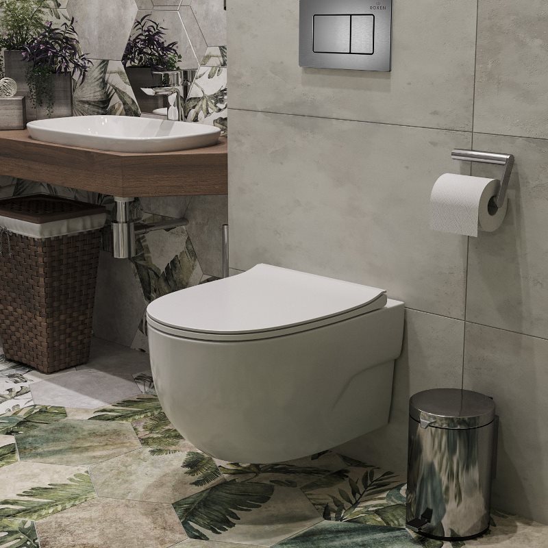 Унитаз с инсталляцией Roxen Porto подвесной с крышкой, с кнопкой пр., оружейная сталь. Все характеристики |