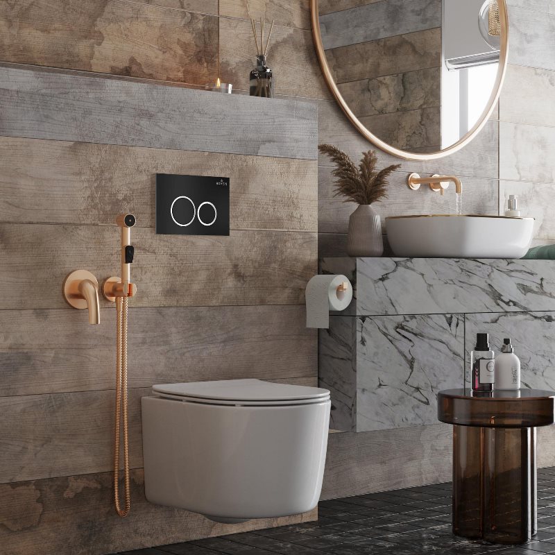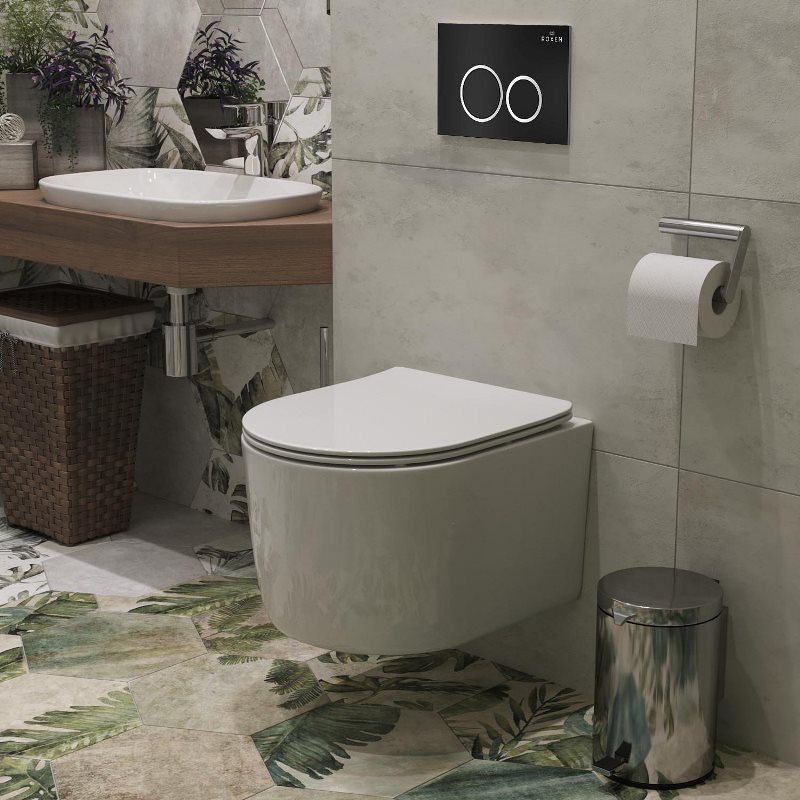 Унитаз с инсталляцией Roxen Simple Compact подвесной с крышкой, с кнопкой кр., черный. Все характеристики |