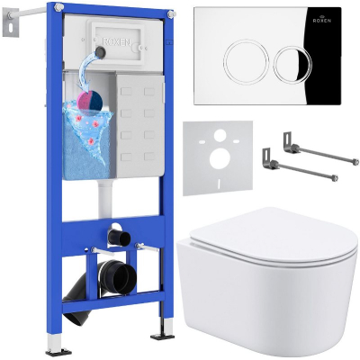Унитаз с инсталляцией Roxen Simple Compact подвесной с крышкой, с кнопкой кр., хром. Все характеристики |
