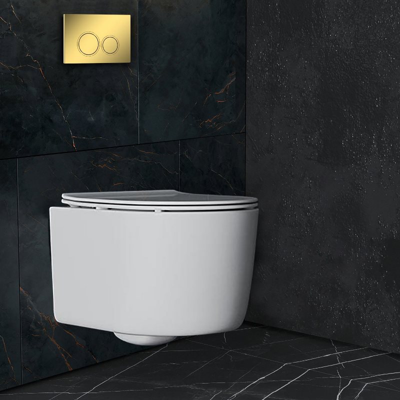 Унитаз с инсталляцией Roxen Simple Compact подвесной с крышкой, с кнопкой кр., золото. Все характеристики |