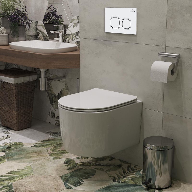 Унитаз с инсталляцией Roxen Simple Compact подвесной с крышкой, с кнопкой кв., белый. Все характеристики |